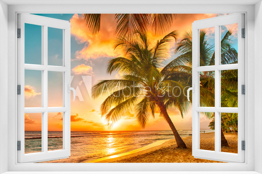 Fototapeta 3D Okno - Krajobrazy Zachód Słońca - #61395290