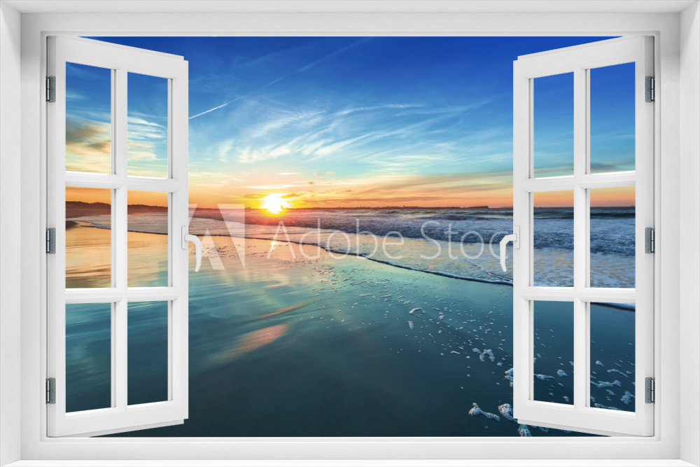 Fototapeta Okno 3D - Zachód słońca na plaży - #78044983