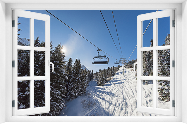 Fototapeta 3D Okno Stok górski, drzewa - krz-27