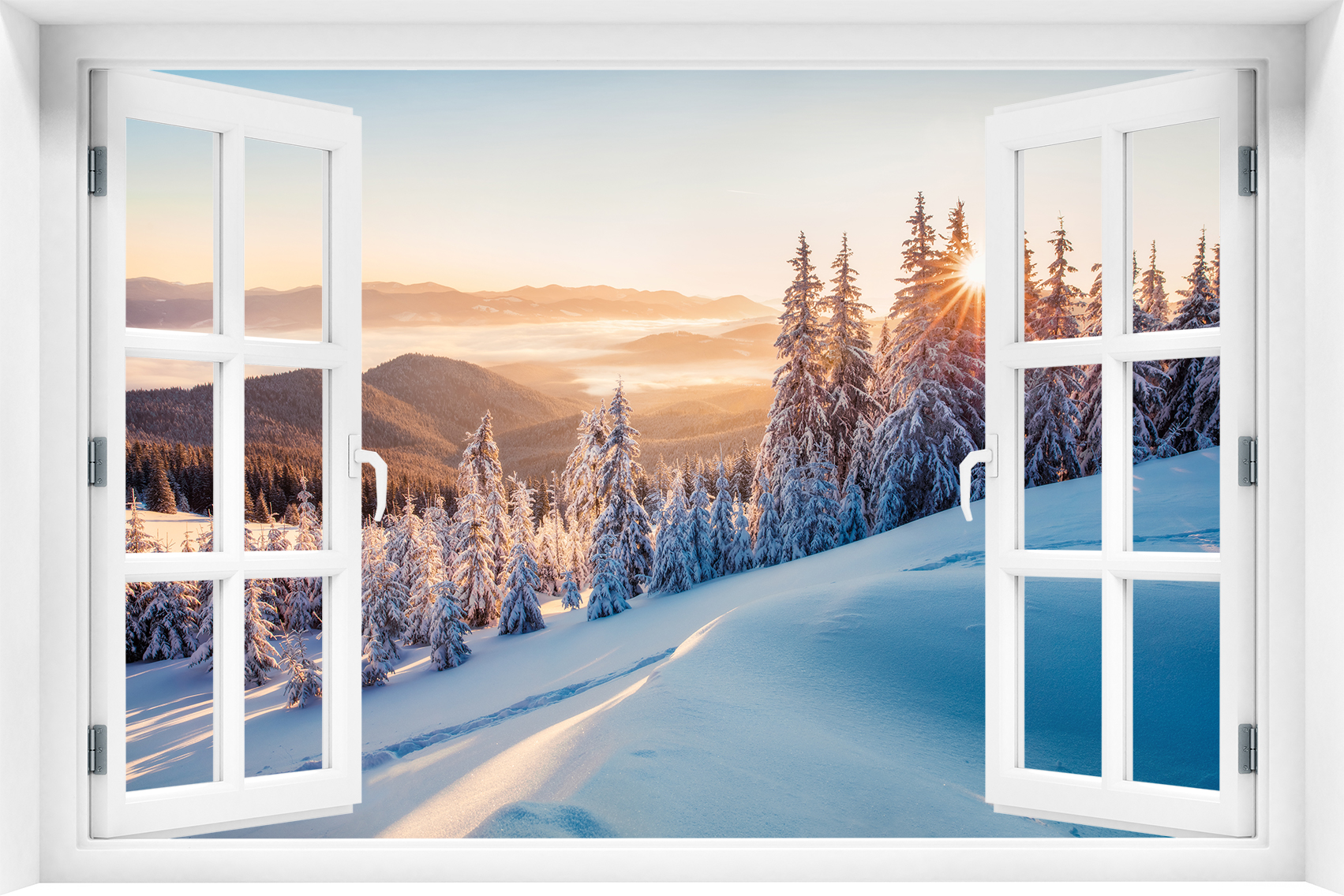 Fototapeta 3D Okno Zimowa sceneria - krz-15